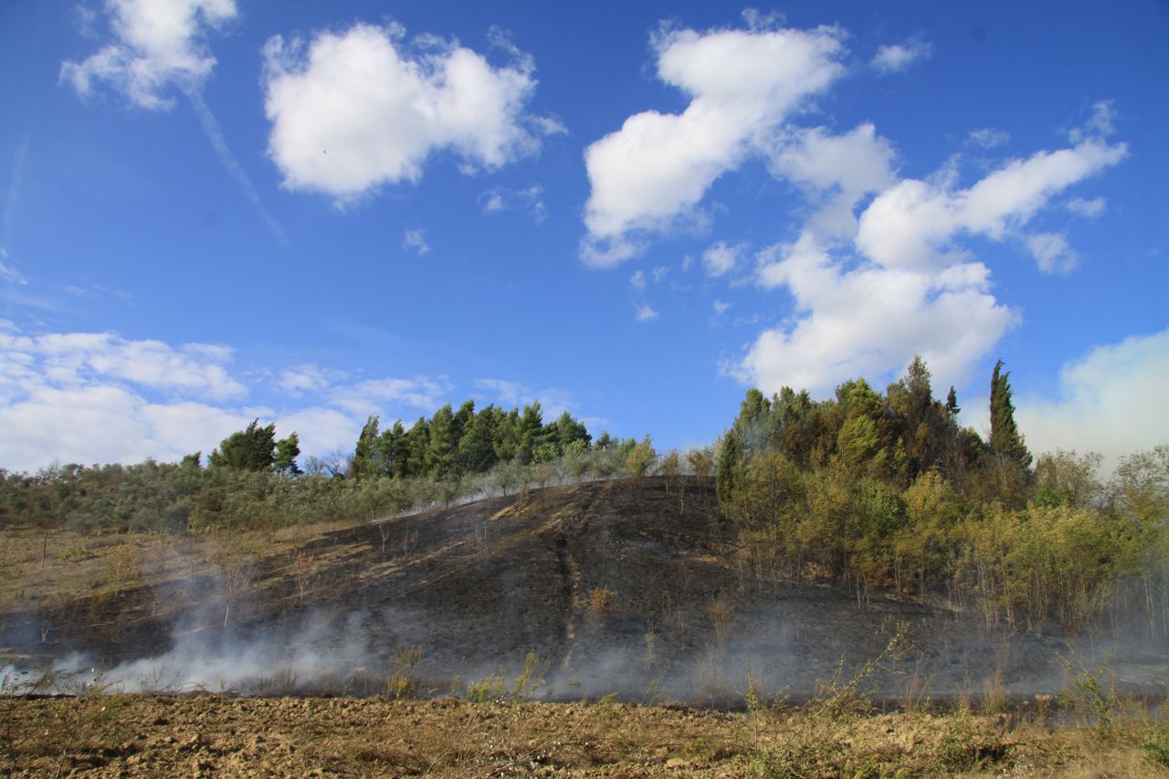 Si vedeva un uomo che con delle frasche cercava di fronteggiare le fiamme per difendere le piante superstiti.